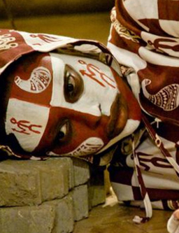 Aida Muluneh is a photographer and founder of DESTA (Developing and Educating Societies through the Arts) in Addis Ababa, a non-profit organization that focuses on photography workshops and exhibitions. Muluneh believes that Africans should document and show their own realities. She was born in Ethiopia but spent her adolescence in places such as Yemen, England, Cyprus, and Canada. Abroad she was impacted by the images of Ethiopian famine that were pervasive throughout the West.